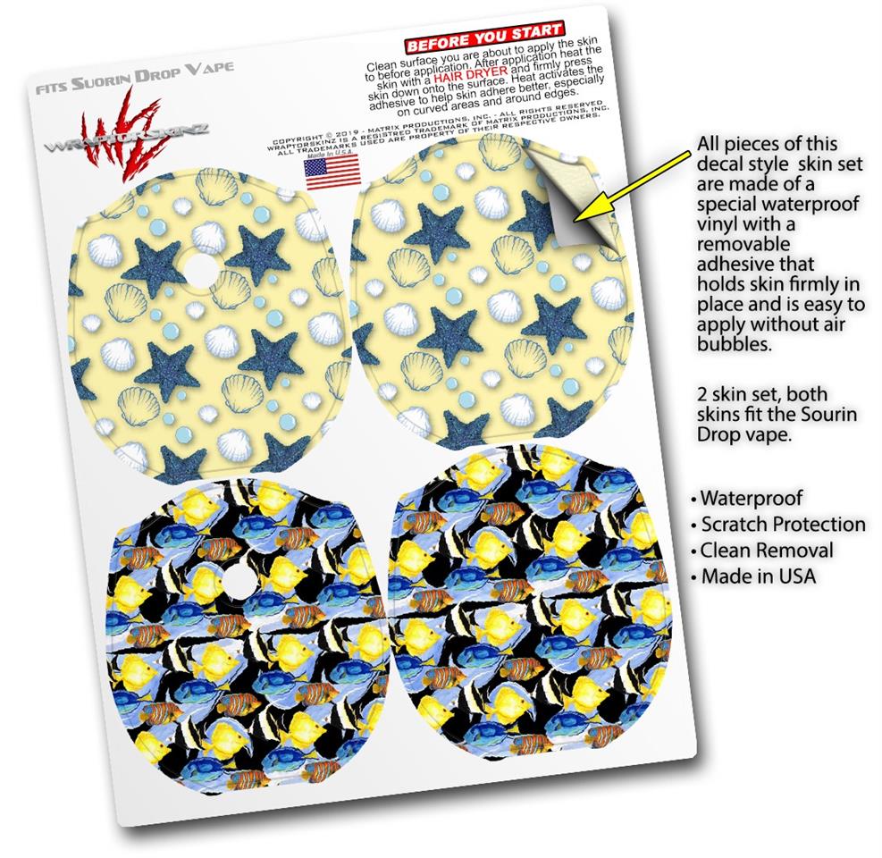 Skin Decal Wrap 2 Pack compatible with Suorin Drop Starfish and Sea Shells Yellow Sunshine VAPE NOT INCLUDED