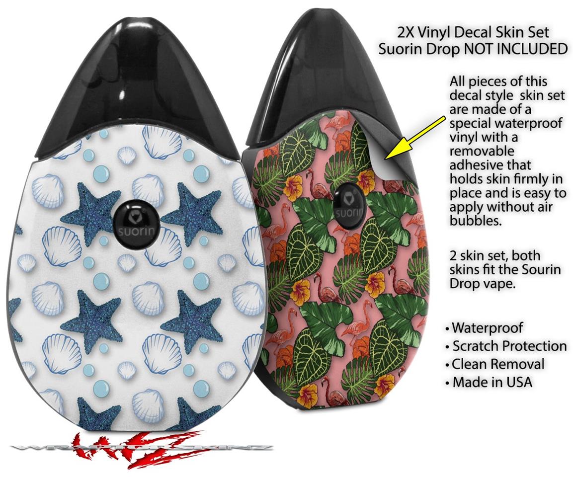 Skin Decal Wrap 2 Pack compatible with Suorin Drop Starfish and Sea Shells White VAPE NOT INCLUDED