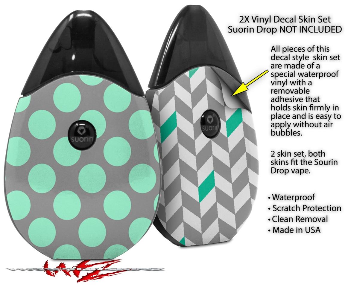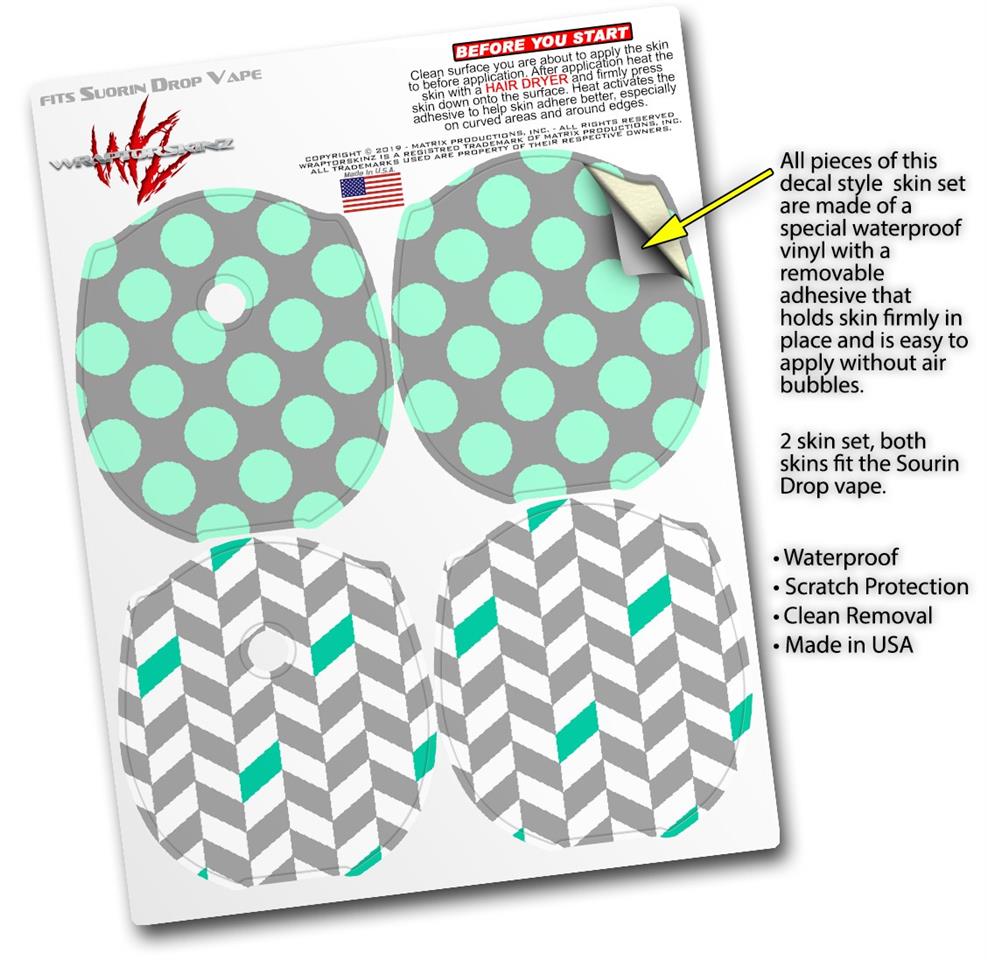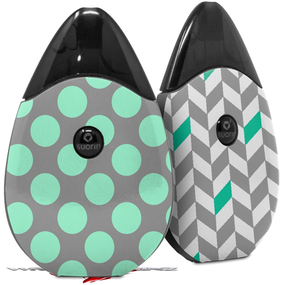 Skin Decal Wrap 2 Pack compatible with Suorin Drop Kearas Polka Dots Mint And Gray VAPE NOT INCLUDED