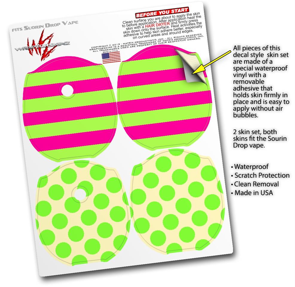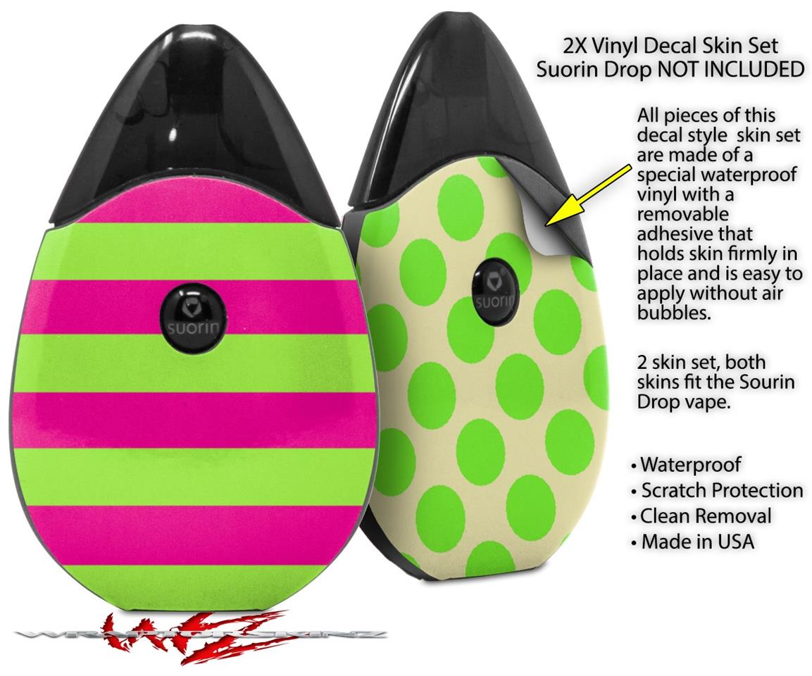 Skin Decal Wrap 2 Pack compatible with Suorin Drop Psycho Stripes Neon Green and Hot Pink VAPE NOT INCLUDED