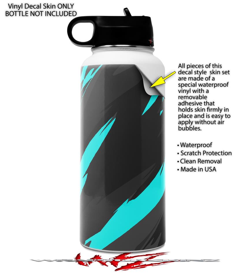 Skin Wrap Decal compatible with Hydro Flask Wide Mouth Bottle 32oz Jagged Camo Neon Teal (BOTTLE NOT INCLUDED)
