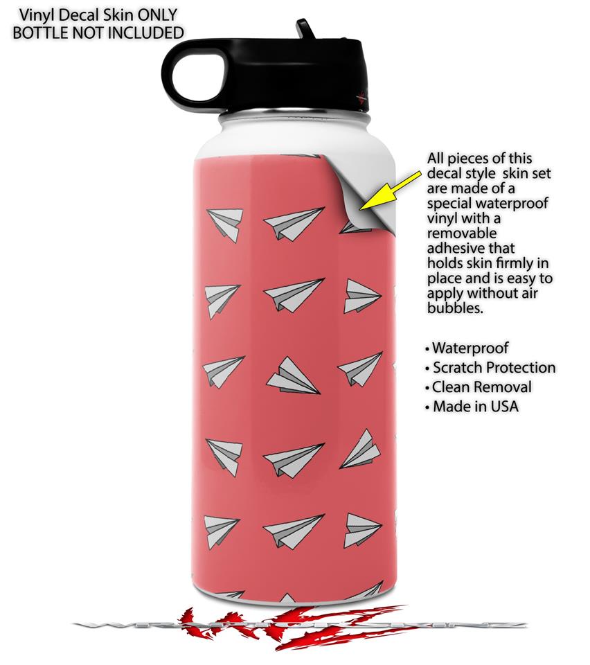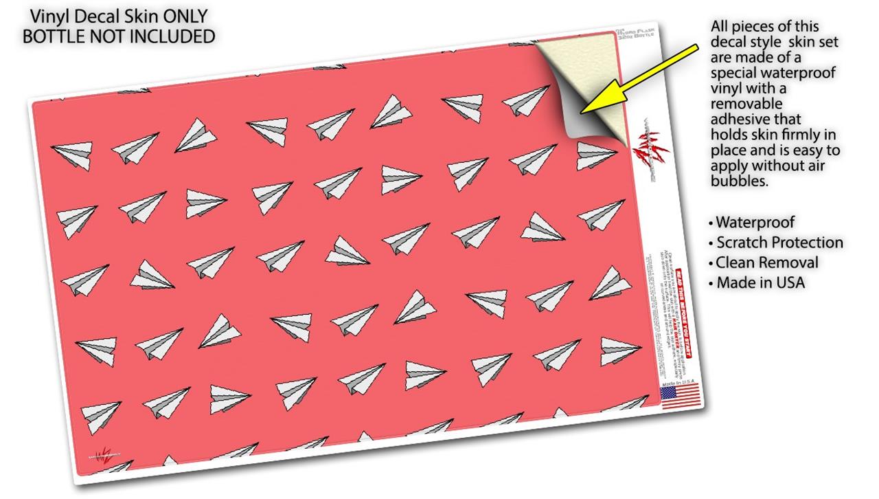 Skin Wrap Decal compatible with Hydro Flask Wide Mouth Bottle 32oz Paper Planes Coral (BOTTLE NOT INCLUDED)