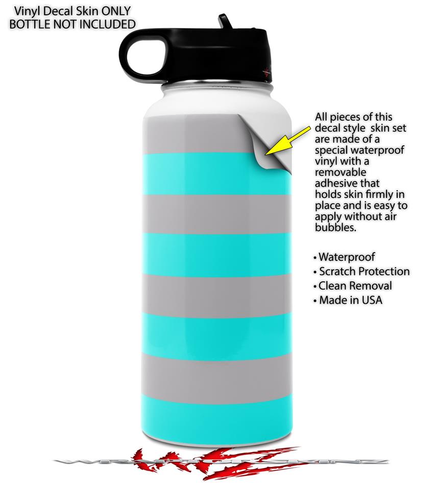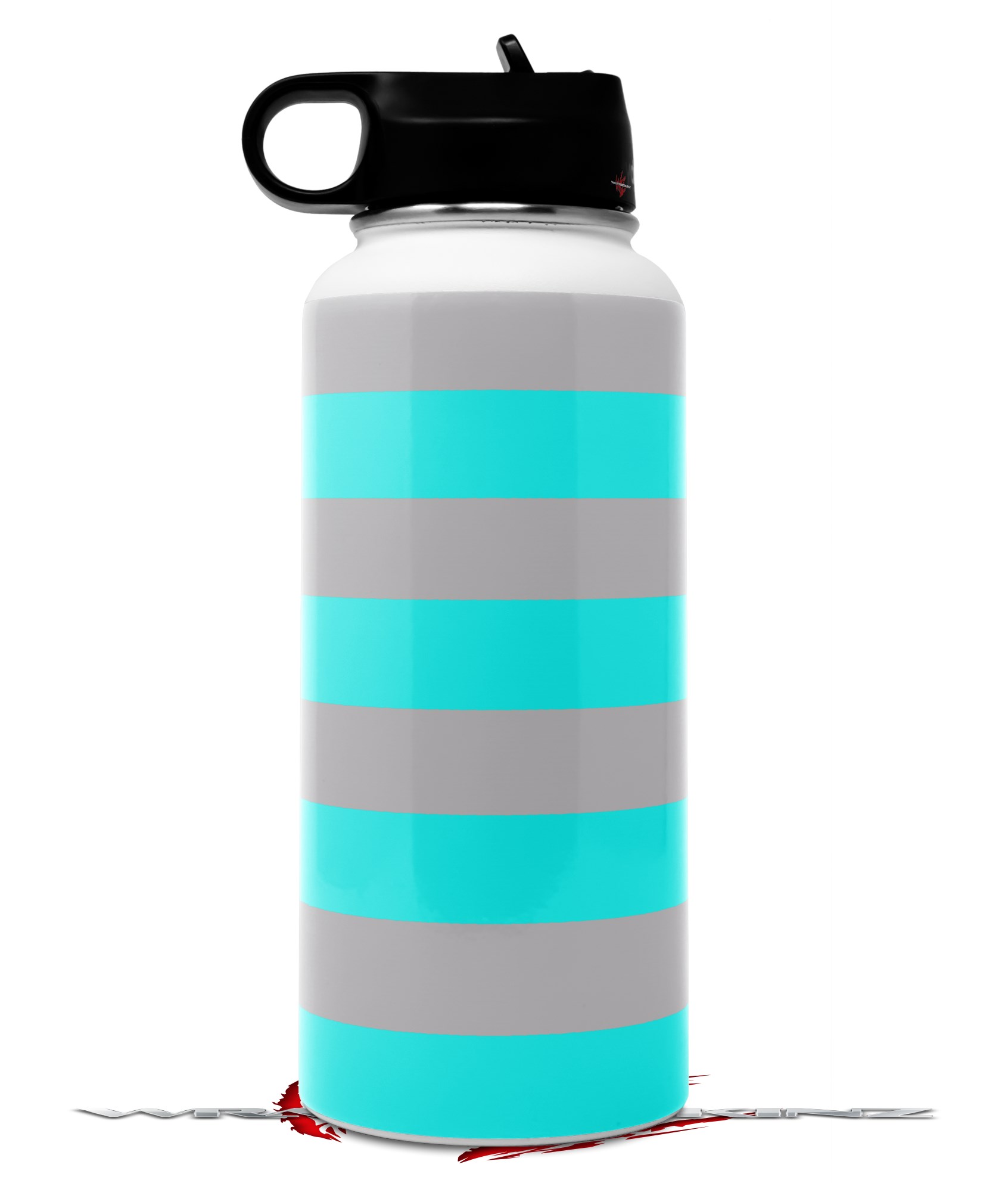Skin Wrap Decal compatible with Hydro Flask Wide Mouth Bottle 32oz Psycho Stripes Neon Teal and Gray (BOTTLE NOT INCLUDED)