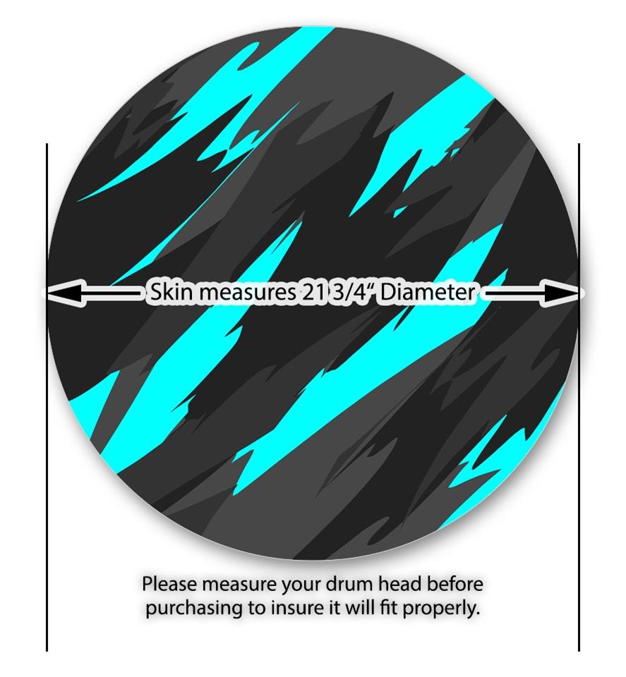 This design also available in other sizes. WraptorSkinz® skin wraps compatible with most kick drum heads. Printed using superb photo quality designs and vibrant colors printed with special fade resistant inks that last even in direct sun for years. WraptorSkinz are a composite three layer commercial grade materials vinyl. The bottom layer is a air release, grey block out removable adhesive that hides existing graphics on the drum head and is easily applied without air bubbles. The middle layer is a flexible vinyl printed with UV protected, fade resistant inks that deliver superb photo quality designs in vibrant colors. Finally, we bond a professional grade laminate over the entire skin adding a glossy protective finish.