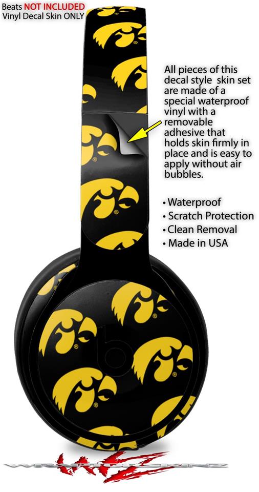 WraptorSkinz Skin Skin Decal Wrap works with Beats Solo Pro (Original) Headphones Iowa Hawkeyes Tigerhawk Tiled 06 Gold on Black Skin Only BEATS NOT INCLUDED