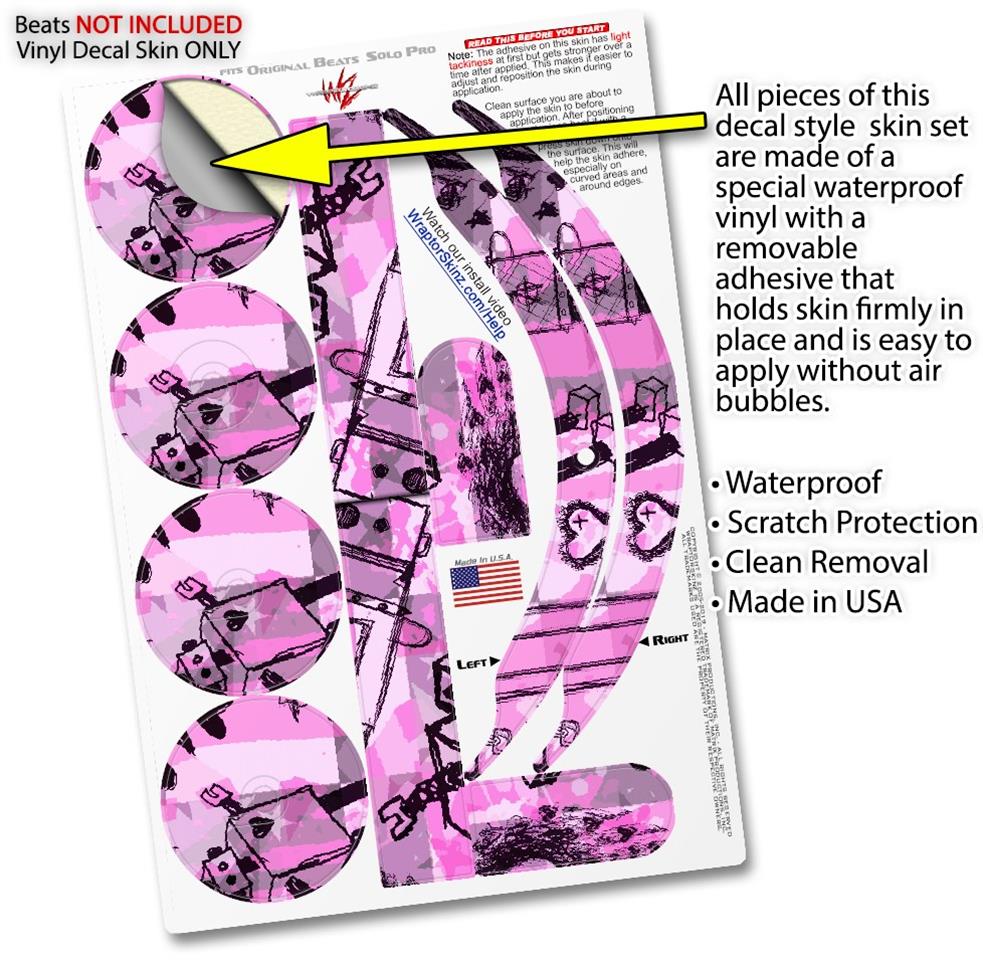 WraptorSkinz Skin Skin Decal Wrap works with Beats Solo Pro (Original) Headphones Scene Kid Sketches Pink Skin Only BEATS NOT INCLUDED