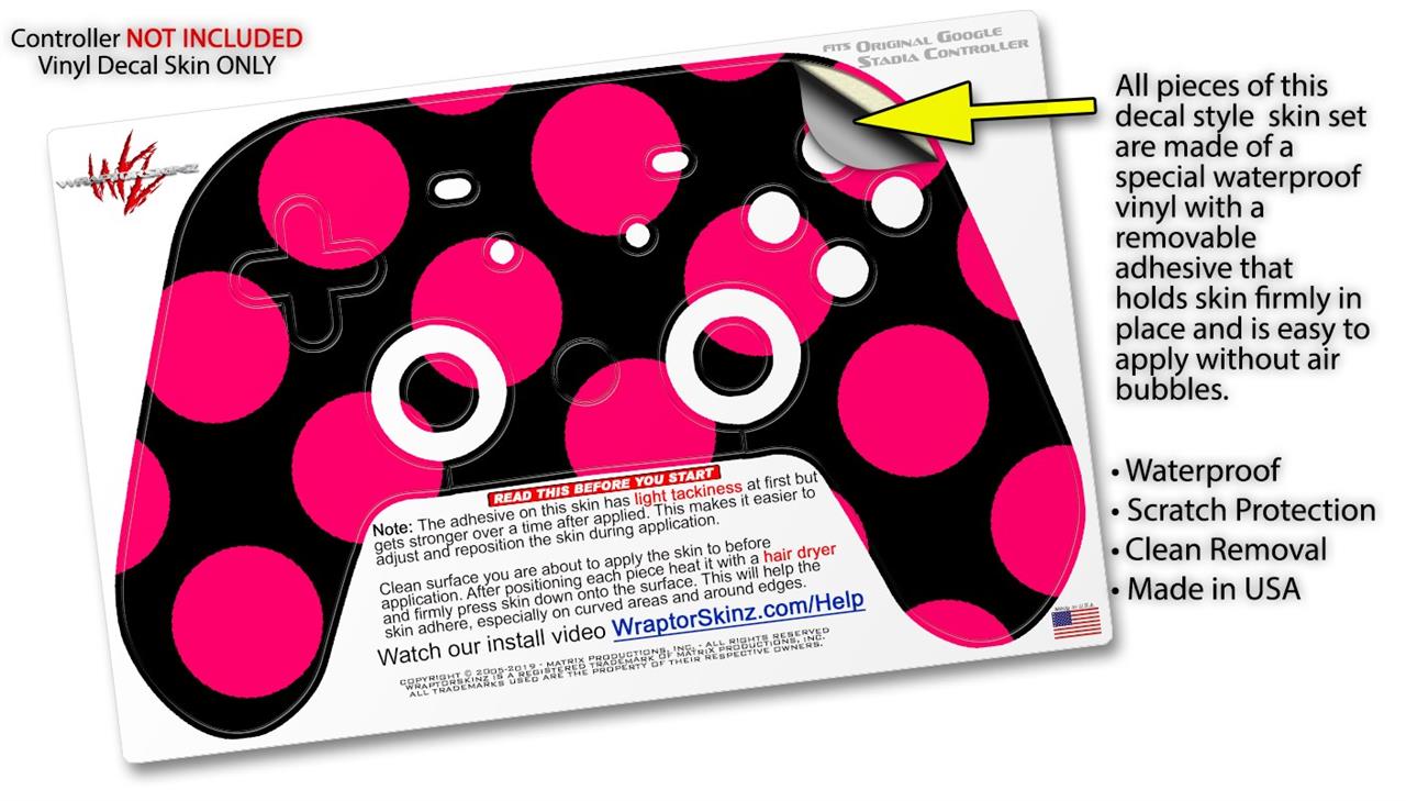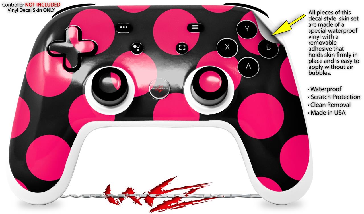 Skin Decal Wrap works with Original Google Stadia Controller Kearas Polka Dots Pink On Black Skin Only CONTROLLER NOT INCLUDED