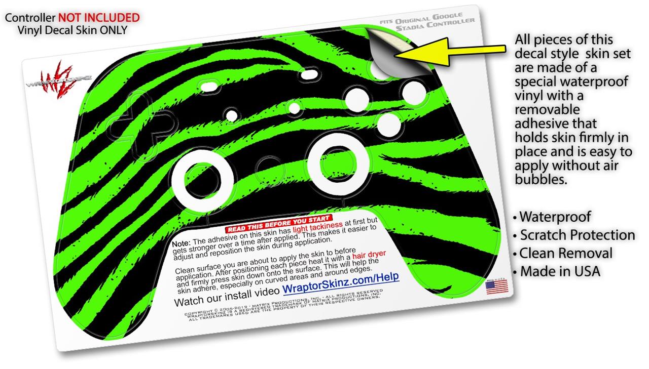 Skin Decal Wrap works with Original Google Stadia Controller Zebra Green Skin Only CONTROLLER NOT INCLUDED