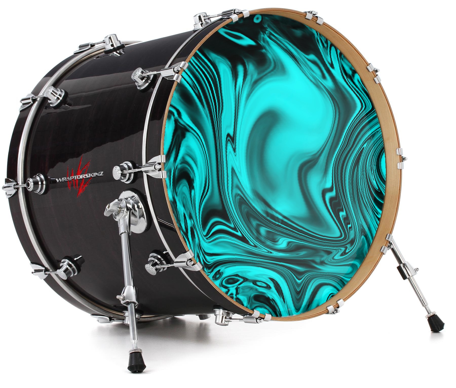 Vinyl Decal Skin Wrap for 20" Bass Kick Drum Head Liquid Metal Chrome Neon Teal - DRUM HEAD NOT INCLUDED