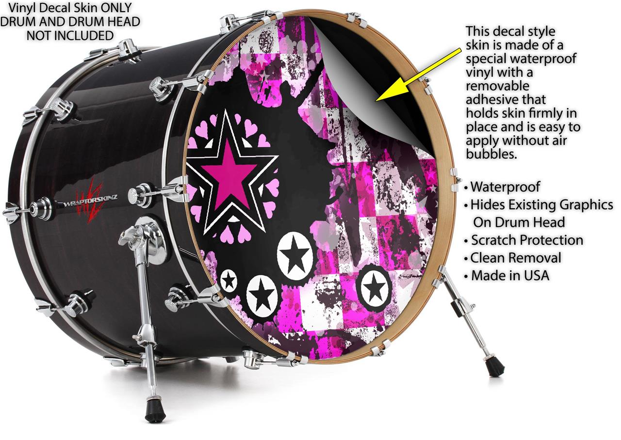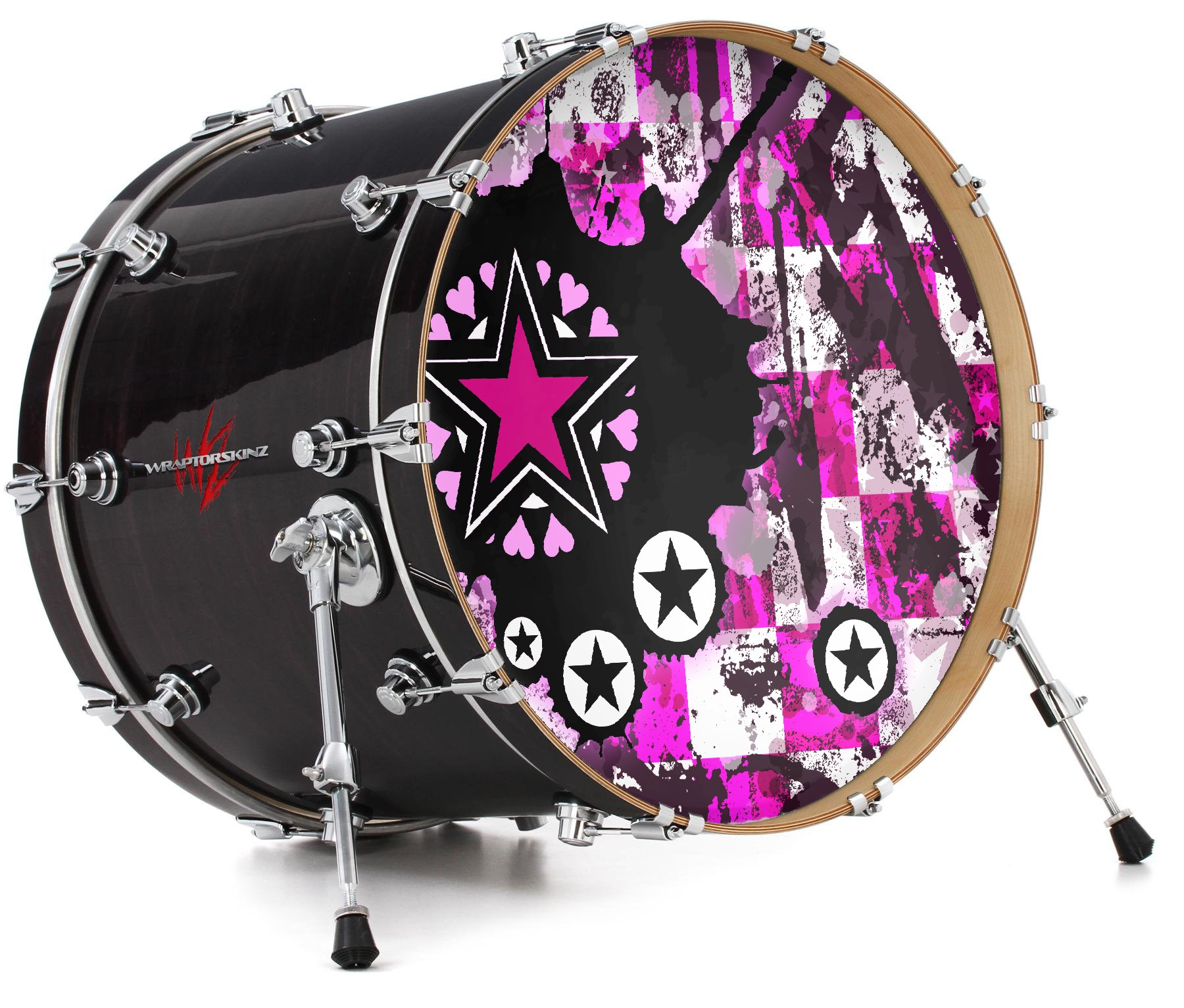 Vinyl Decal Skin Wrap for 20" Bass Kick Drum Head Pink Star Splatter - DRUM HEAD NOT INCLUDED
