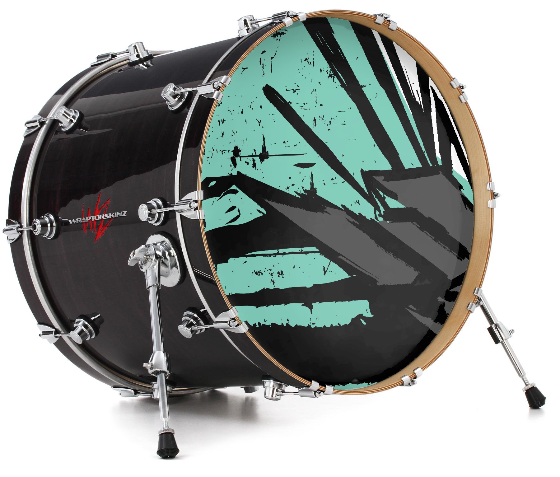This design also available in other sizes. WraptorSkinz® skin wraps compatible with most kick drum heads. Printed using superb photo quality designs and vibrant colors printed with special fade resistant inks that last even in direct sun for years. WraptorSkinz are a composite three layer commercial grade materials vinyl. The bottom layer is a air release, grey block out removable adhesive that hides existing graphics on the drum head and is easily applied without air bubbles. The middle layer is a flexible vinyl printed with UV protected, fade resistant inks that deliver superb photo quality designs in vibrant colors. Finally, we bond a professional grade laminate over the entire skin adding a glossy protective finish.