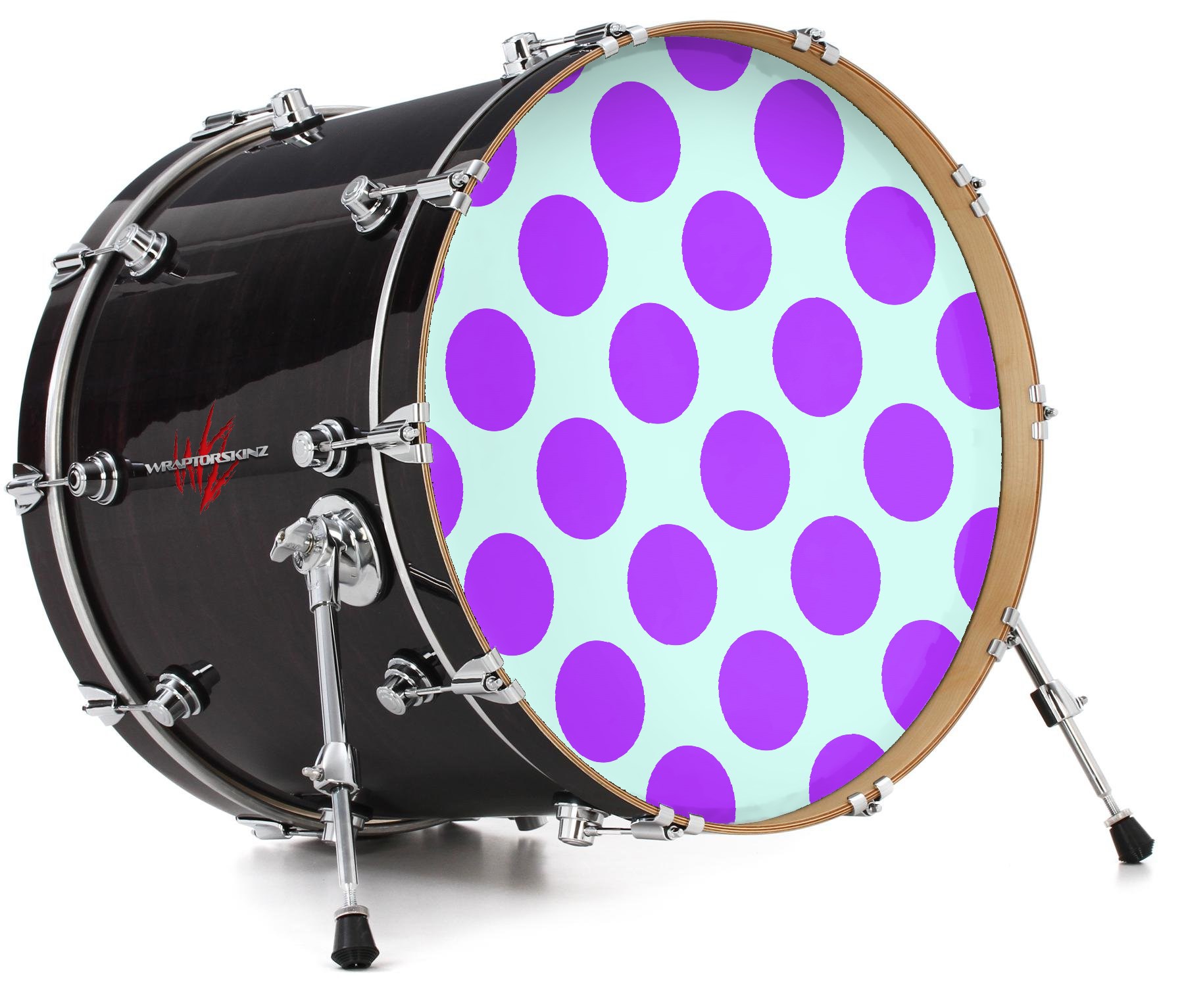 Decal Skin works with most 24" Bass Kick Drum Heads Kearas Polka Dots Purple And Blue - DRUM HEAD NOT INCLUDED