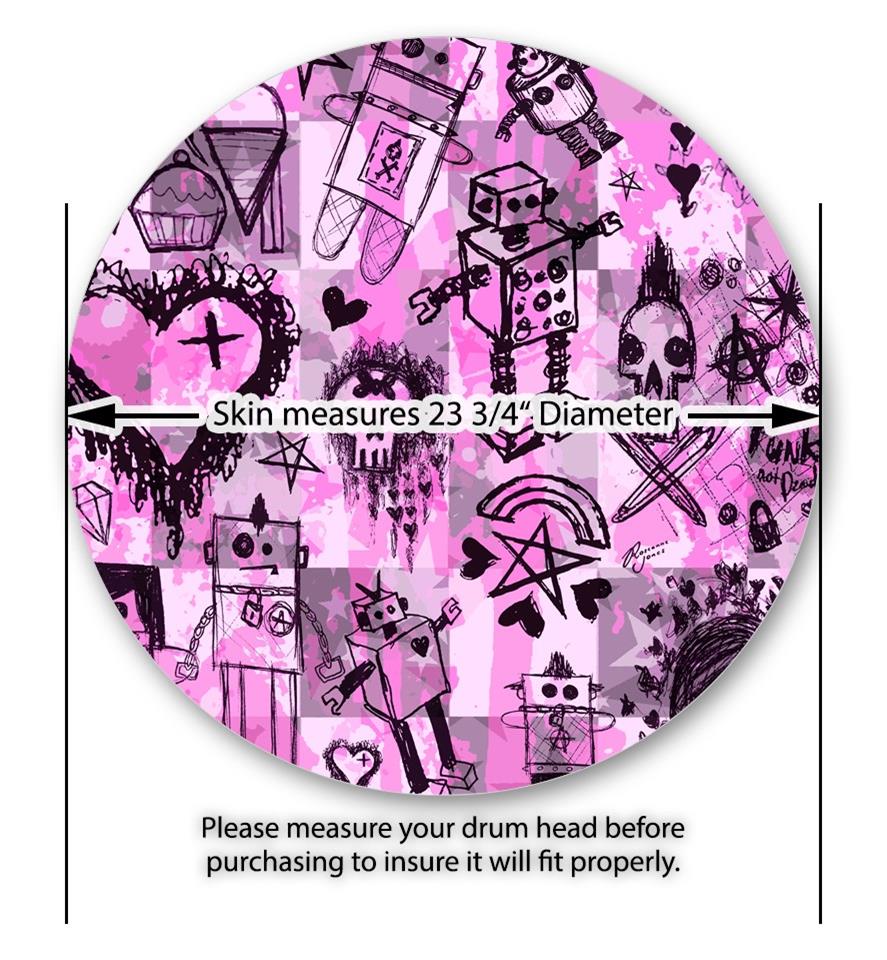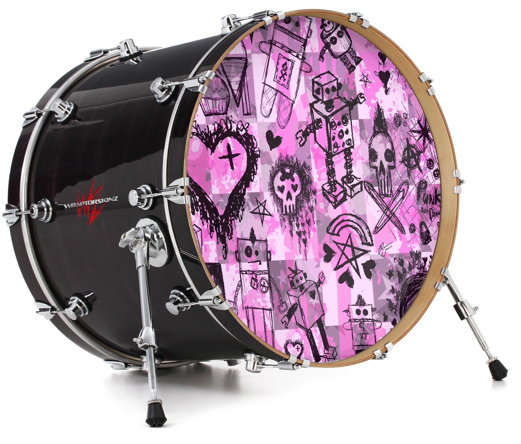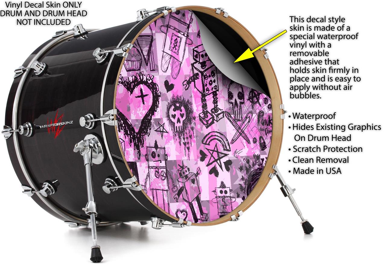 Decal Skin works with most 24" Bass Kick Drum Heads Scene Kid Sketches Pink - DRUM HEAD NOT INCLUDED