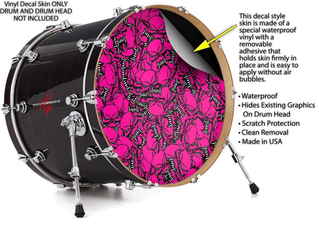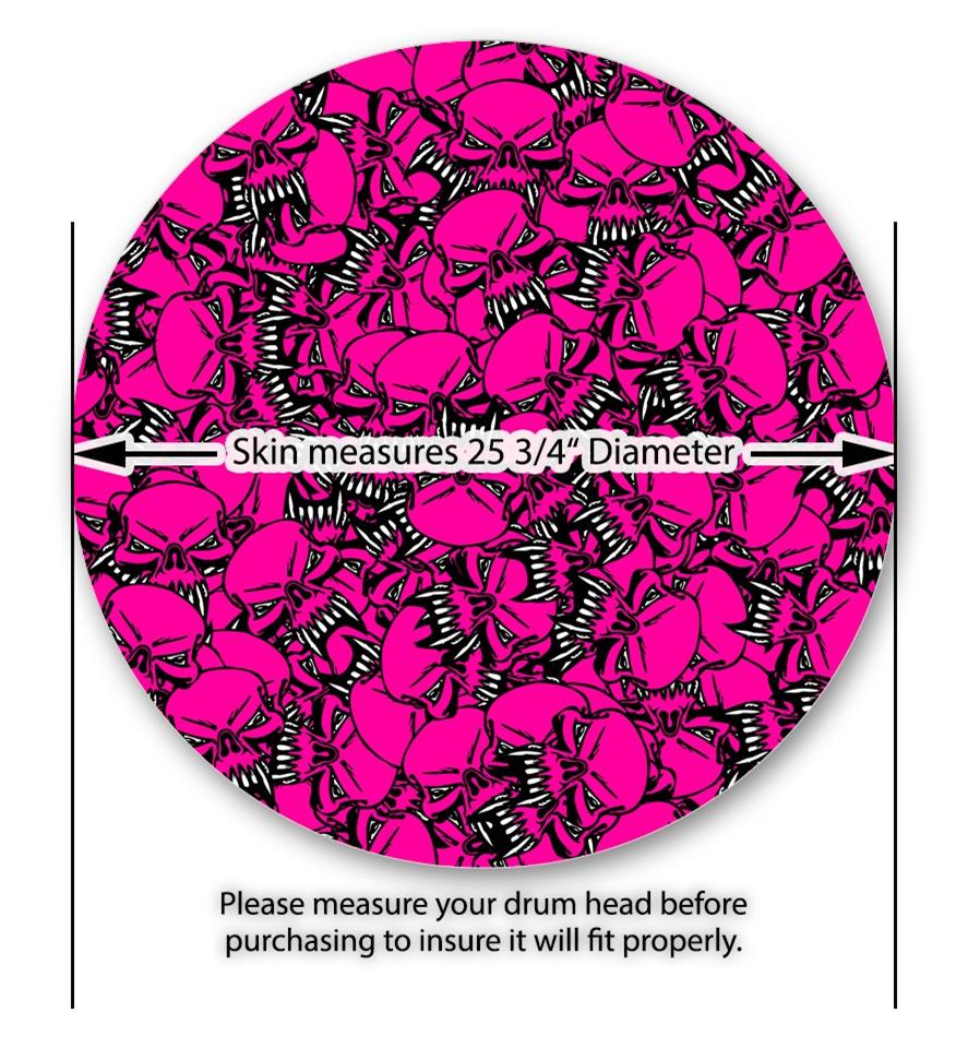 Decal Skin works with most 26" Bass Kick Drum Heads Scattered Skulls Hot Pink - DRUM HEAD NOT INCLUDED