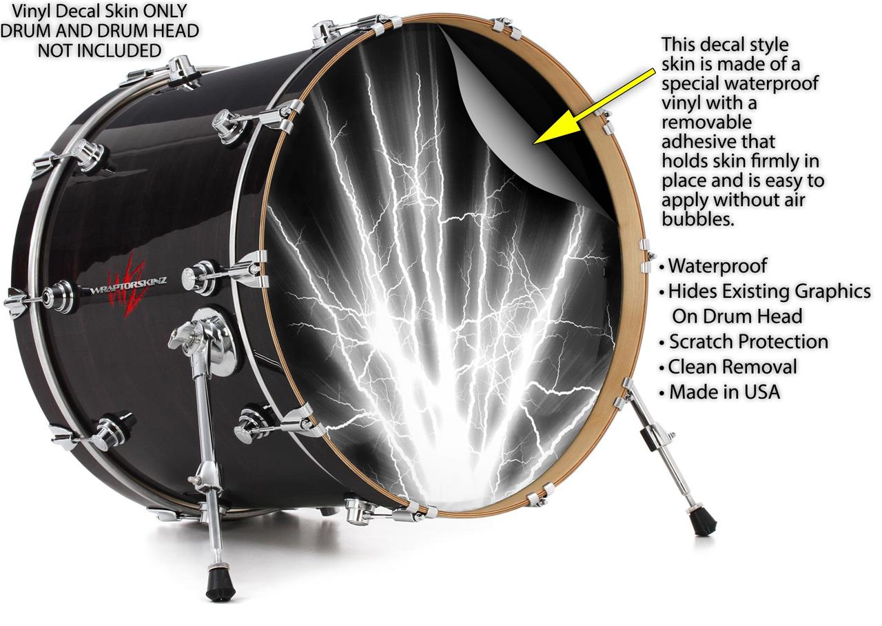 Decal Skin works with most 26" Bass Kick Drum Heads Lightning White - DRUM HEAD NOT INCLUDED