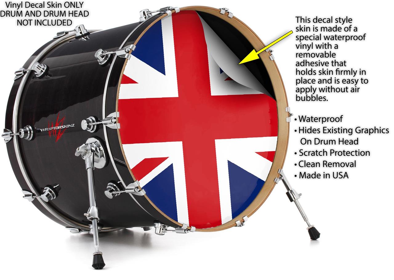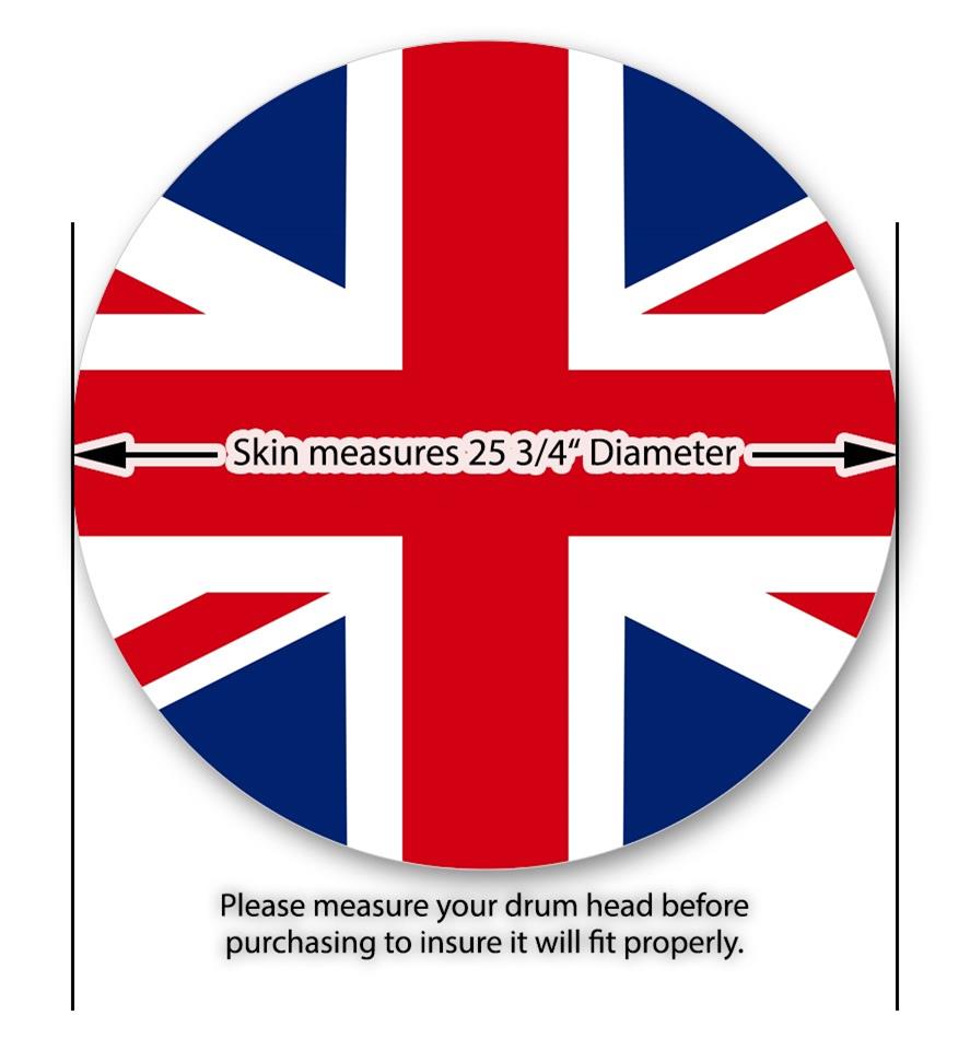 Decal Skin works with most 26" Bass Kick Drum Heads Union Jack 02 - DRUM HEAD NOT INCLUDED
