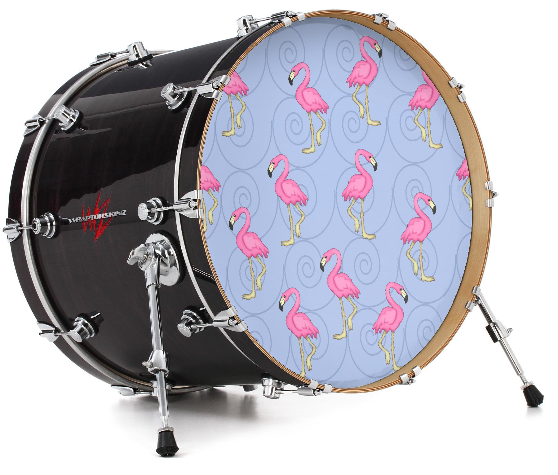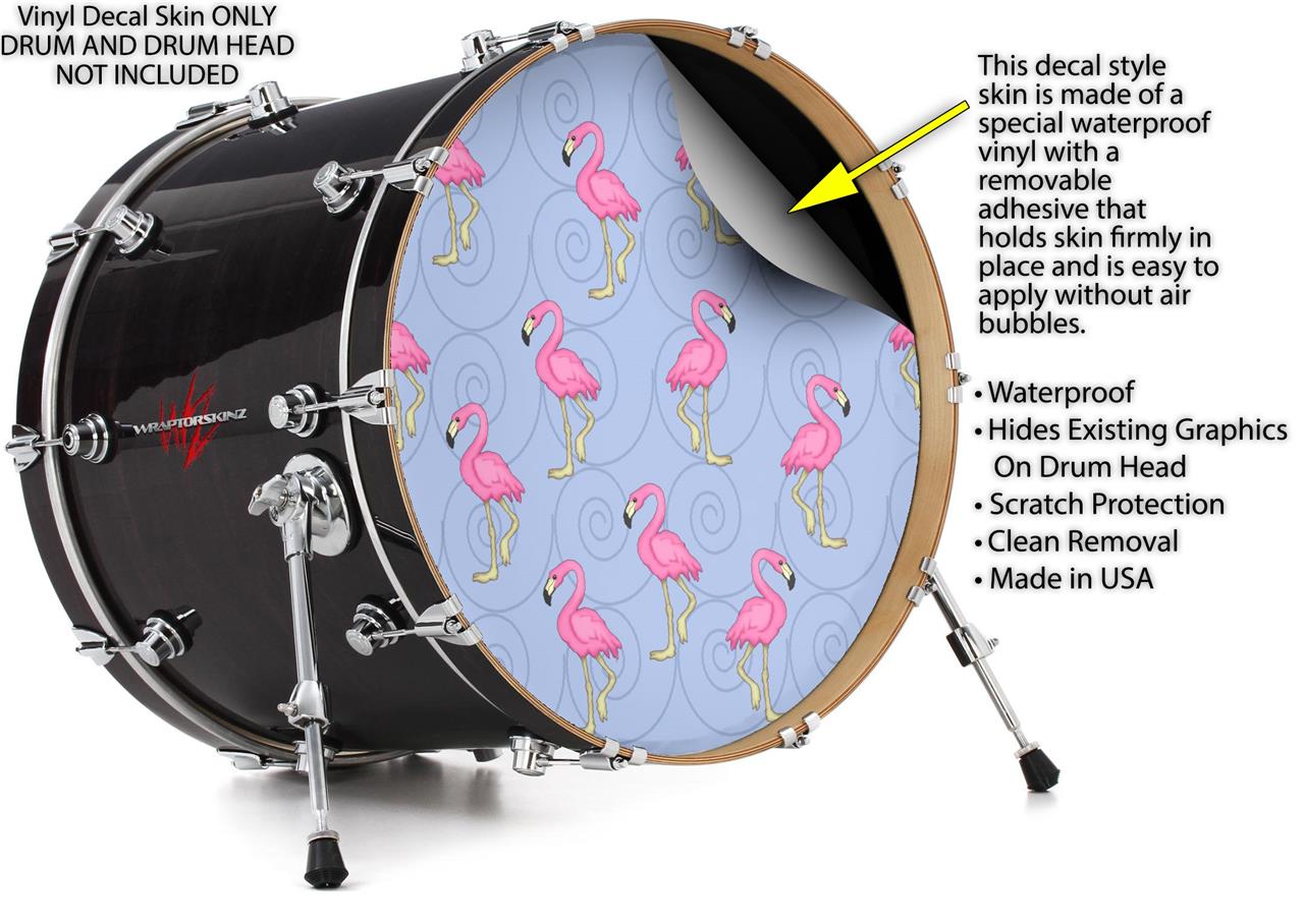 Decal Skin works with most 26" Bass Kick Drum Heads Flamingos on Blue - DRUM HEAD NOT INCLUDED