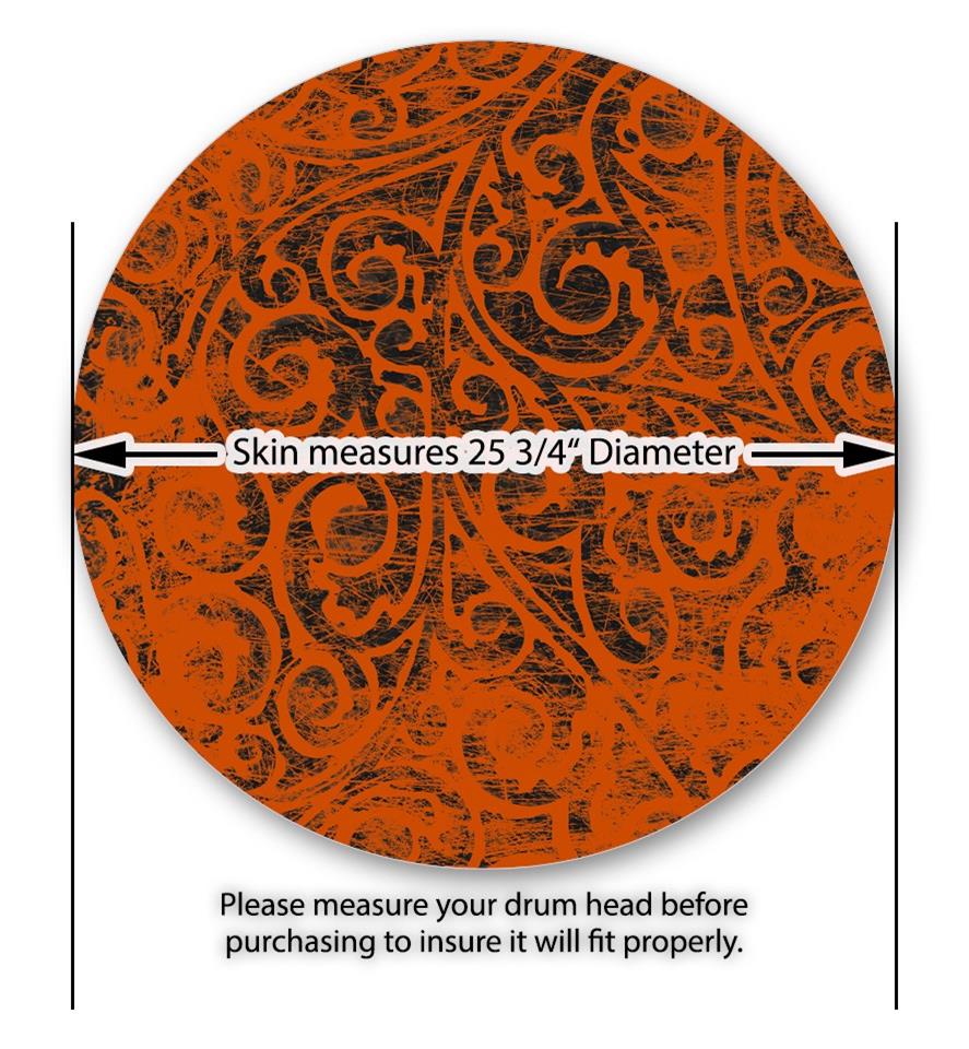 Decal Skin works with most 26" Bass Kick Drum Heads Folder Doodles Burnt Orange - DRUM HEAD NOT INCLUDED
