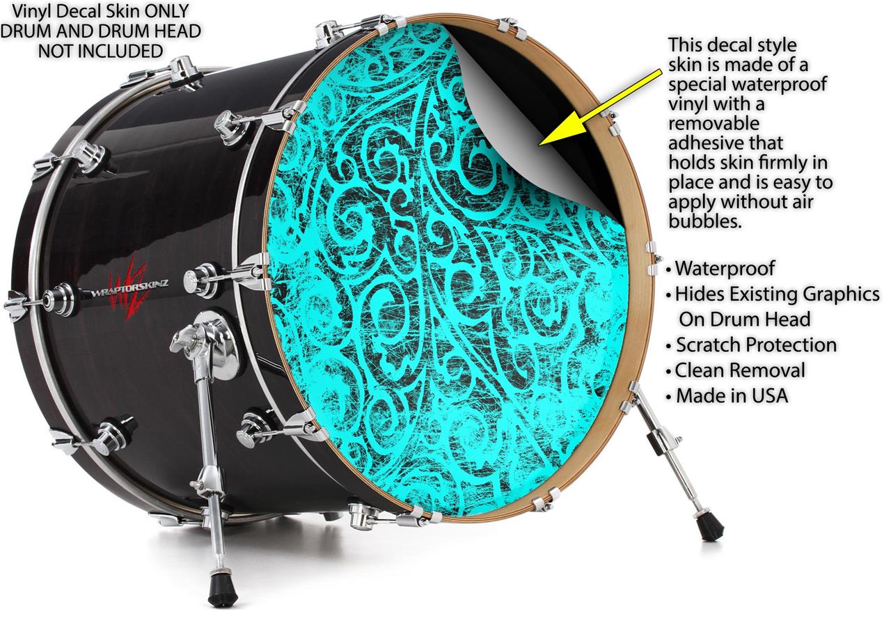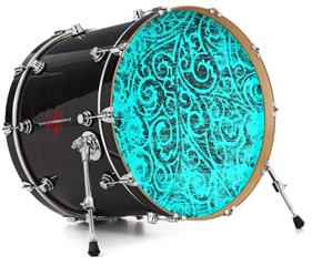 Decal Skin works with most 26" Bass Kick Drum Heads Folder Doodles Neon Teal - DRUM HEAD NOT INCLUDED
