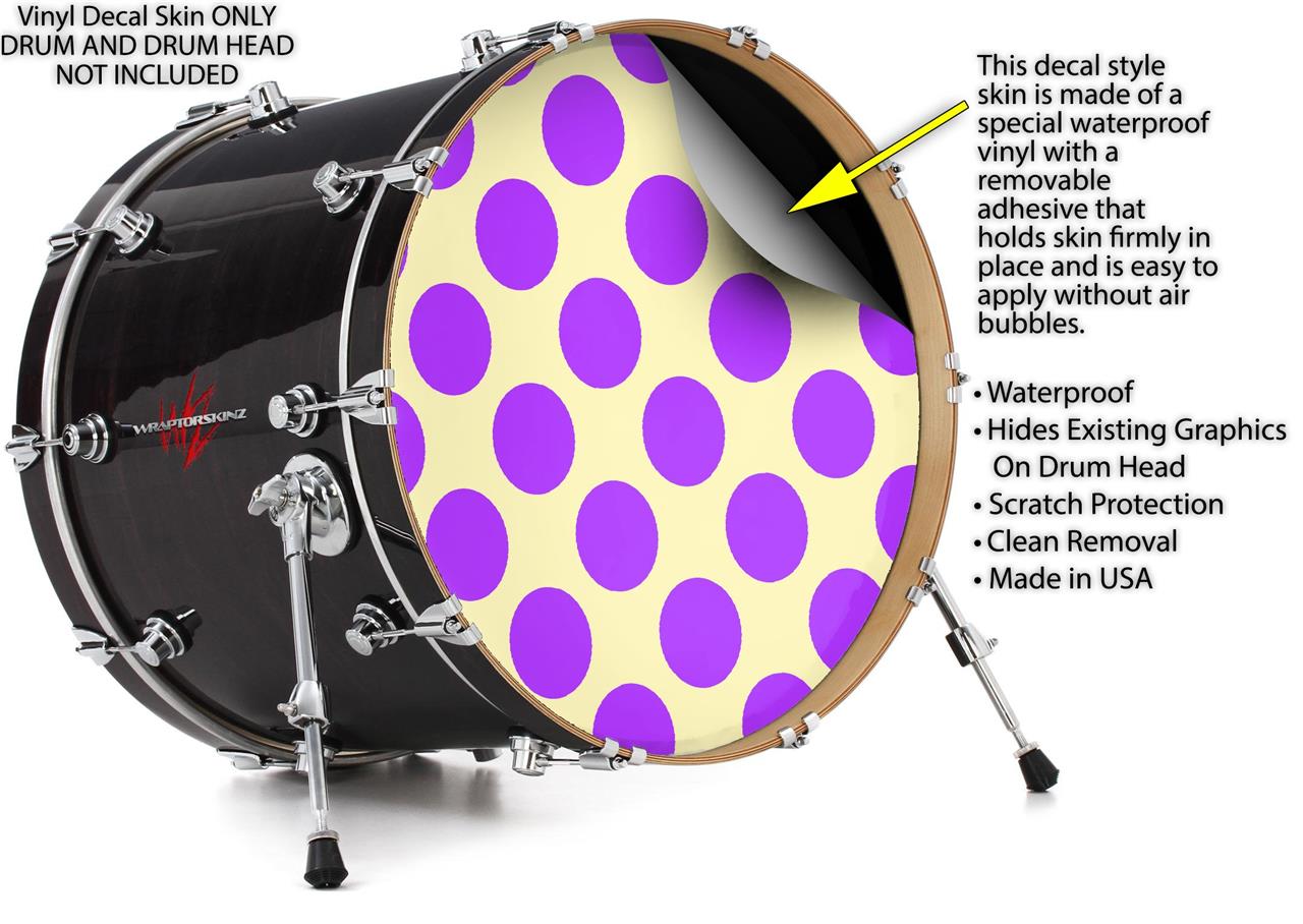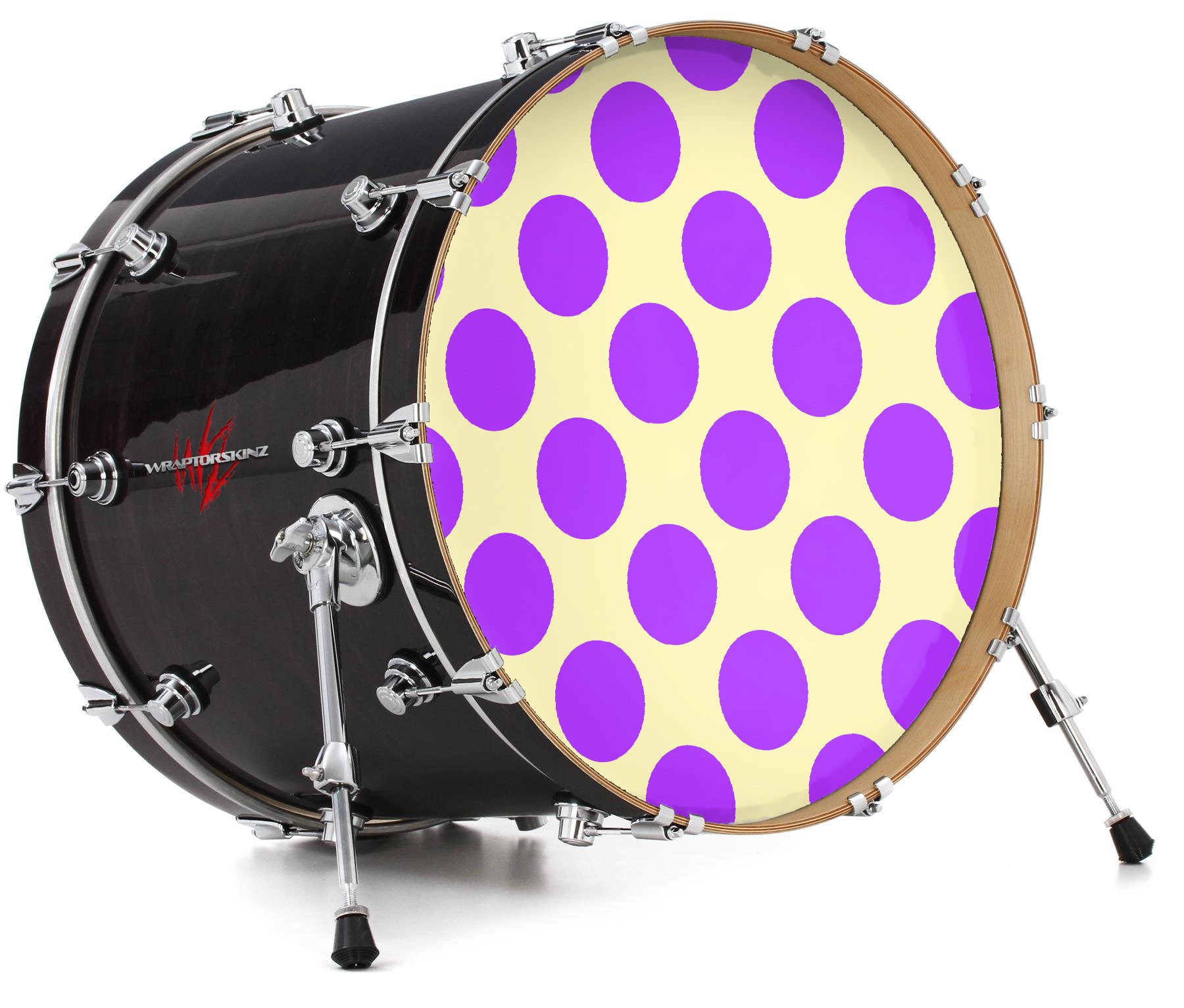 Decal Skin works with most 26" Bass Kick Drum Heads Kearas Polka Dots Purple On Cream - DRUM HEAD NOT INCLUDED