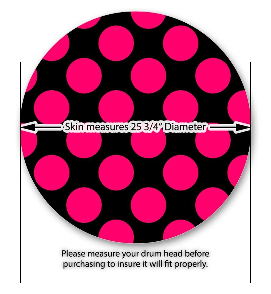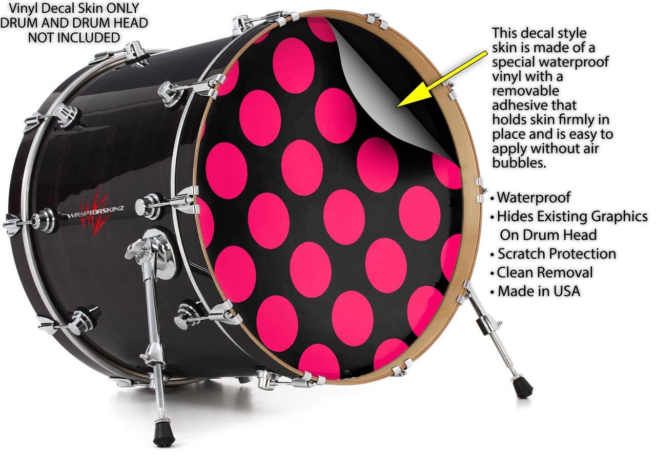 Decal Skin works with most 26" Bass Kick Drum Heads Kearas Polka Dots Pink On Black - DRUM HEAD NOT INCLUDED