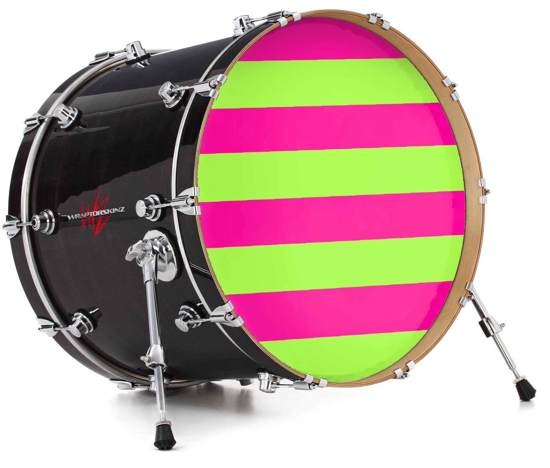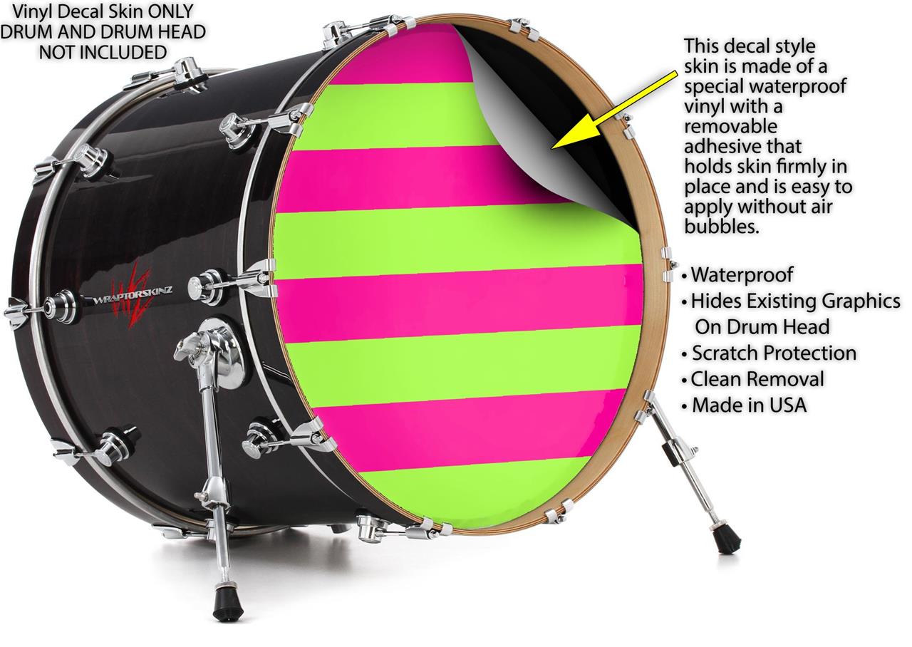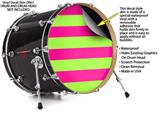 Decal Skin works with most 26" Bass Kick Drum Heads Psycho Stripes Neon Green and Hot Pink - DRUM HEAD NOT INCLUDED