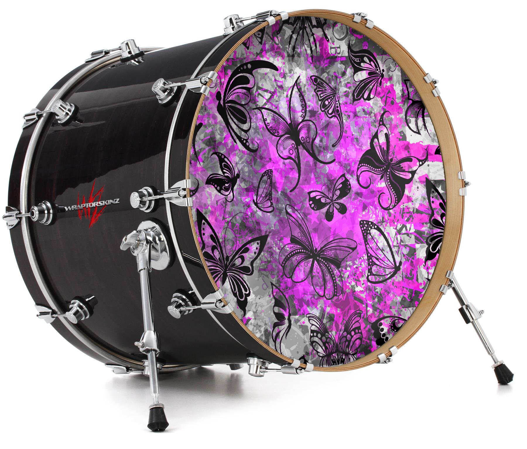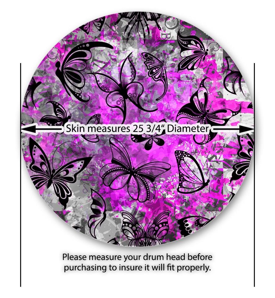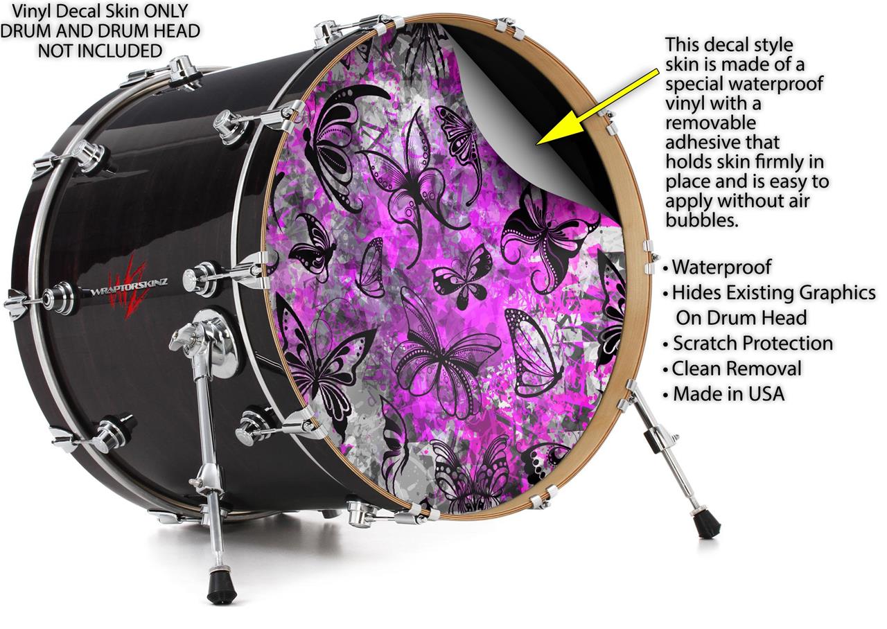 Decal Skin works with most 26" Bass Kick Drum Heads Butterfly Graffiti - DRUM HEAD NOT INCLUDED