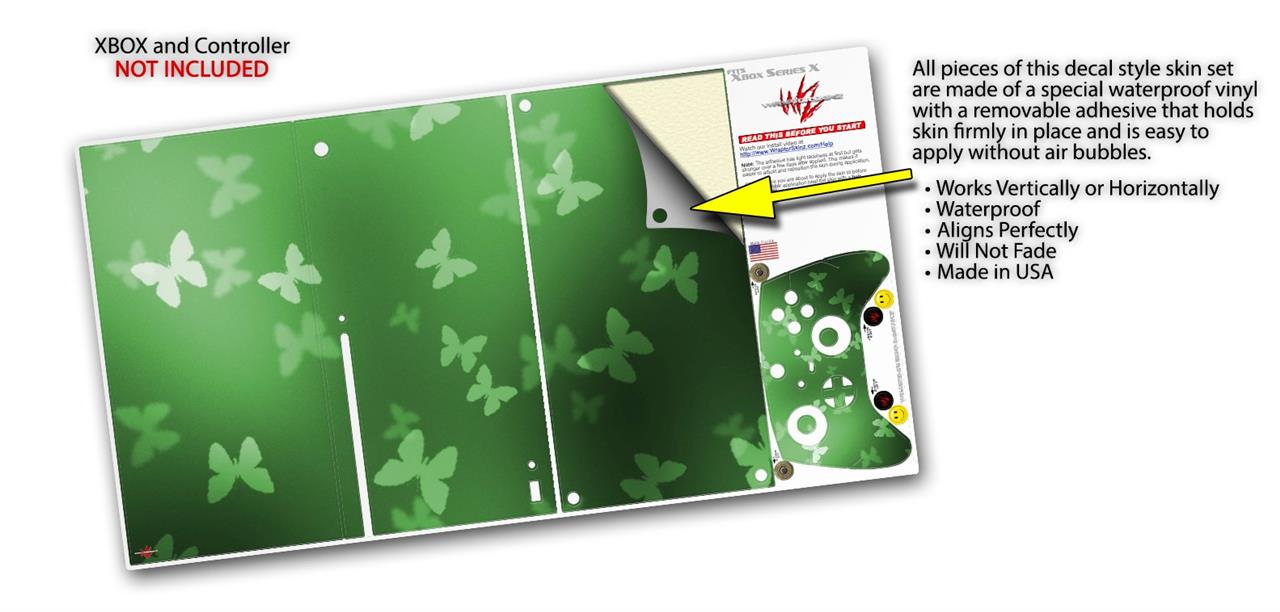 WraptorSkinz Skin Wrap compatible with the 2020 XBOX Series X Console and Controller Bokeh Butterflies Green (XBOX NOT INCLUDED)