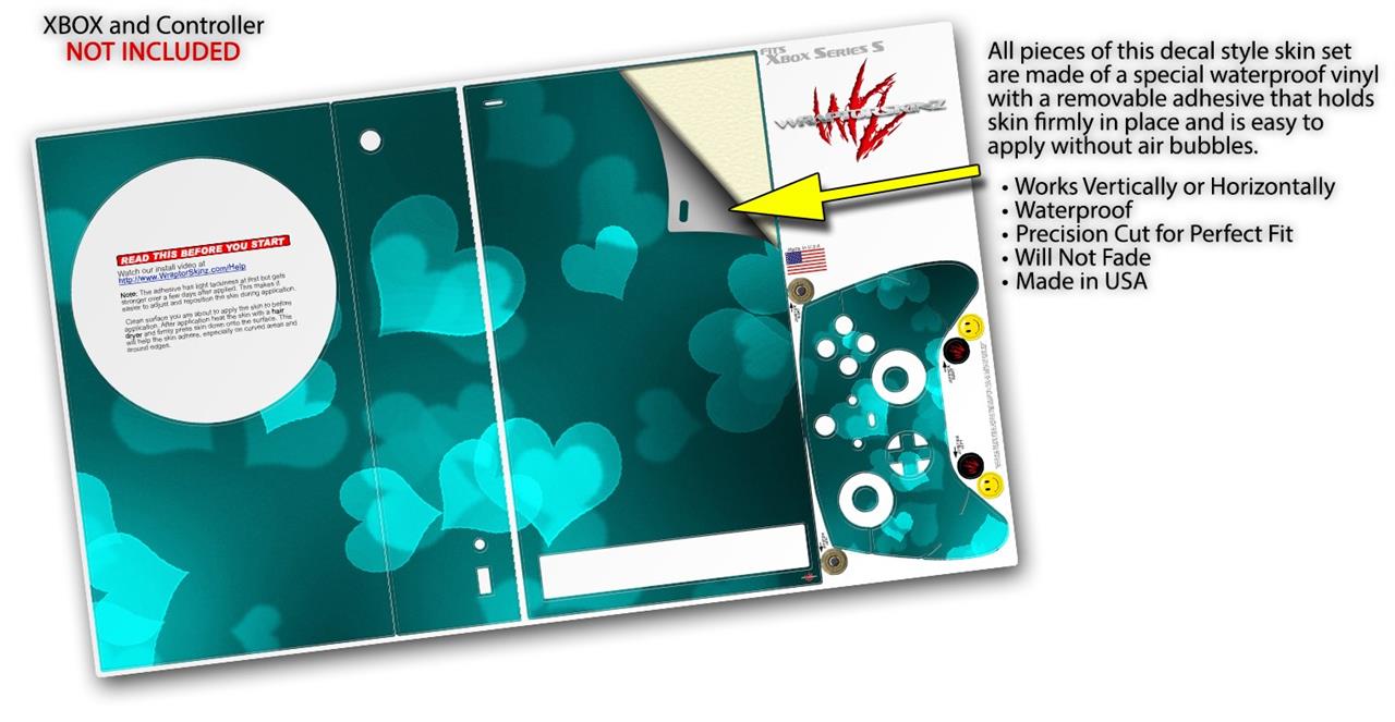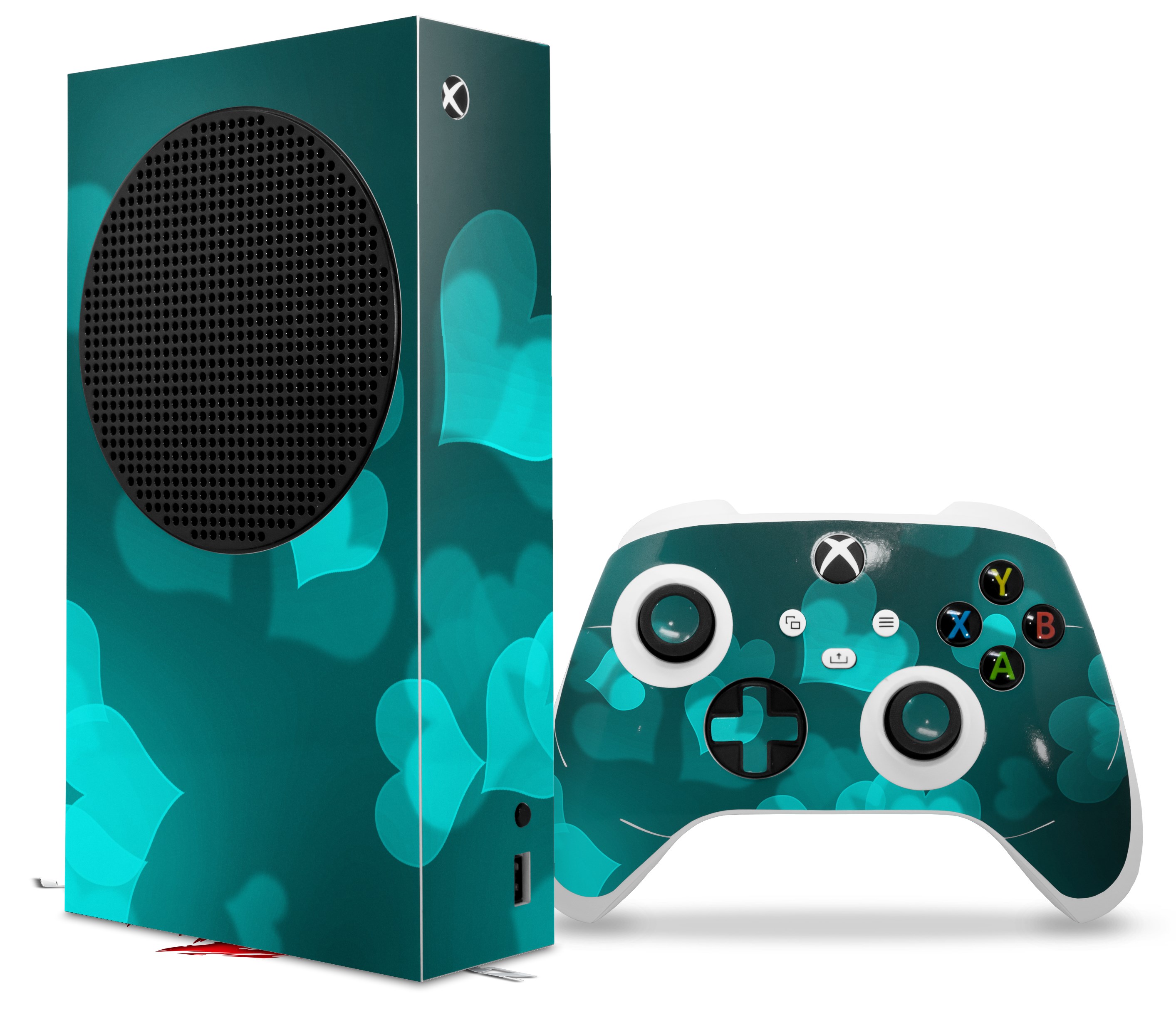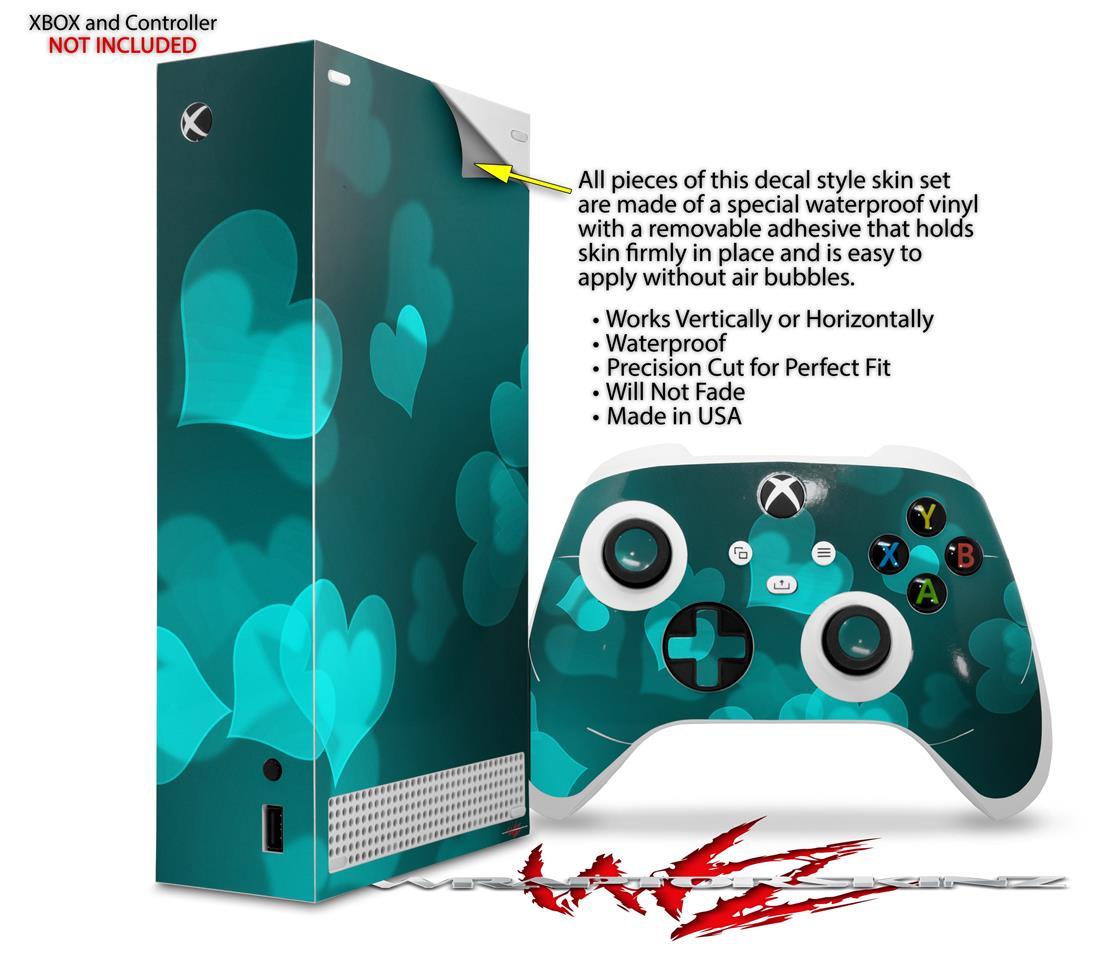 WraptorSkinz Skin Wrap compatible with the 2020 XBOX Series S Console and Controller Bokeh Hearts Neon Teal (XBOX NOT INCLUDED)