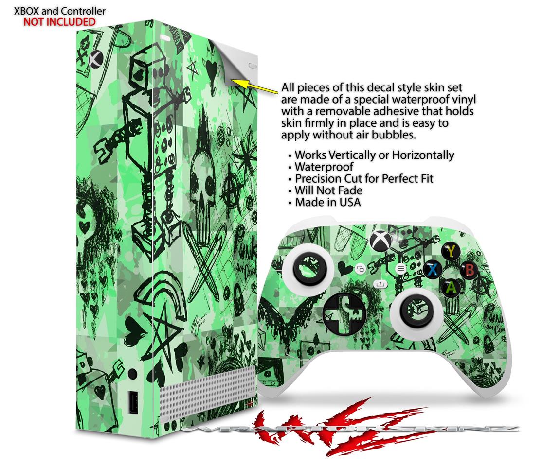 WraptorSkinz Skin Wrap compatible with the 2020 XBOX Series S Console and Controller Scene Kid Sketches Green (XBOX NOT INCLUDED)