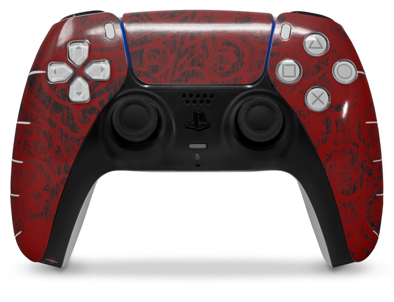 WraptorSkinz Skin Wrap compatible with the Sony PS5 DualSense Controller Folder Doodles Red Dark (CONTROLLER NOT INCLUDED)