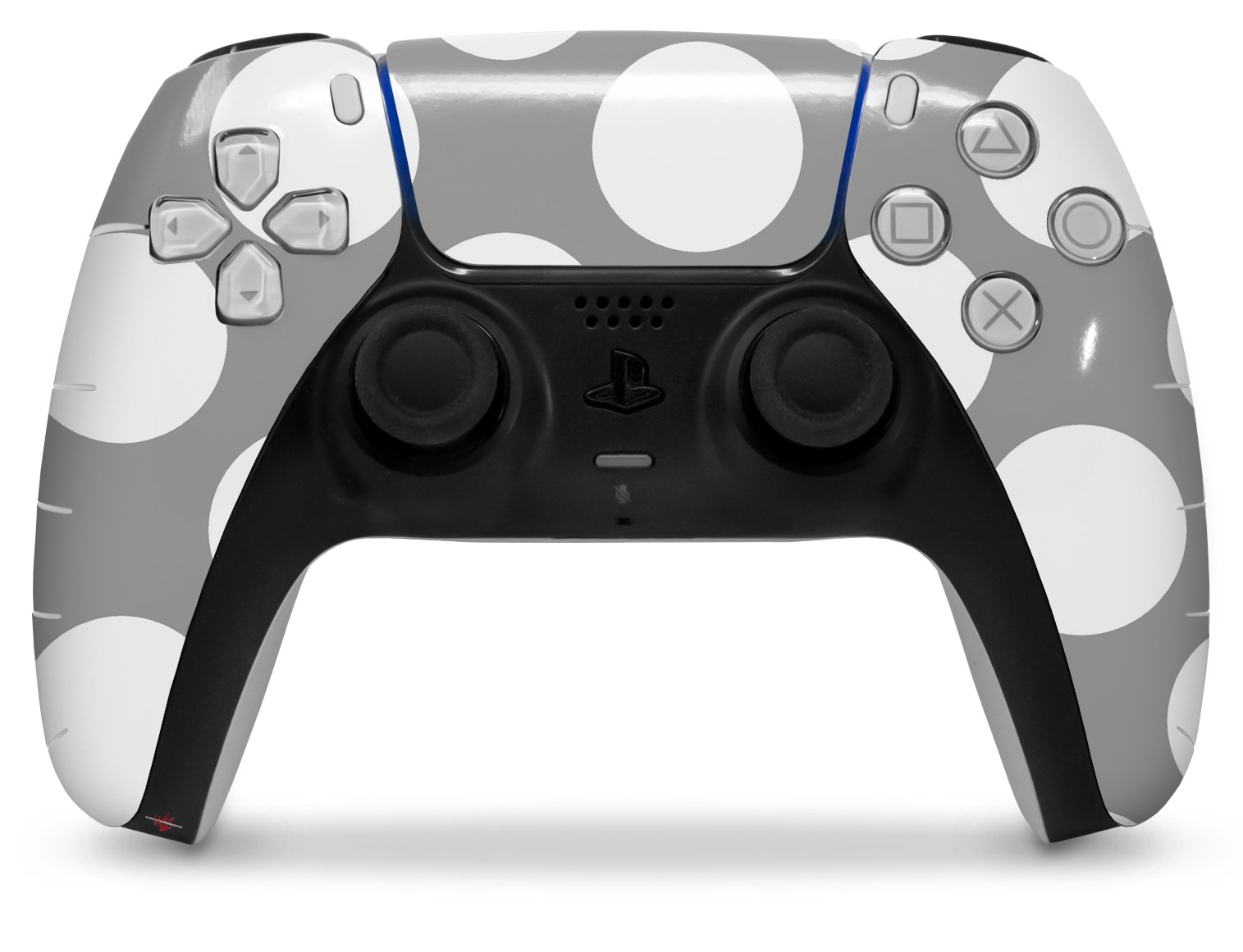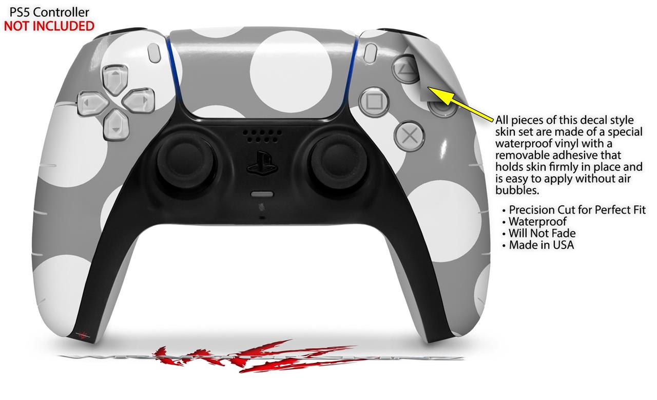 WraptorSkinz Skin Wrap compatible with the Sony PS5 DualSense Controller Kearas Polka Dots Whtie On Gray (CONTROLLER NOT INCLUDED)