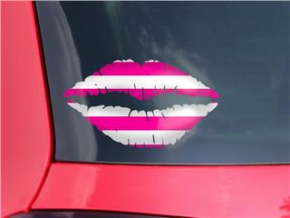 Lips Decal 9x5.5 Kearas Psycho Stripes Hot Pink and White