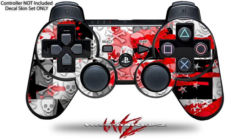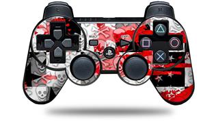 Sony PS3 Controller Decal Style Skin - Checker Skull Splatter Red (CONTROLLER NOT INCLUDED)