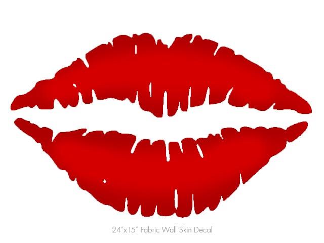 Solids Collection Red - Kissing Lips Fabric Wall Skin Decal measures 24x15 inches