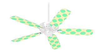 Kearas Polka Dots Green On Cream - Ceiling Fan Skin Kit fits most 42 inch fans (FAN and BLADES SOLD SEPARATELY)