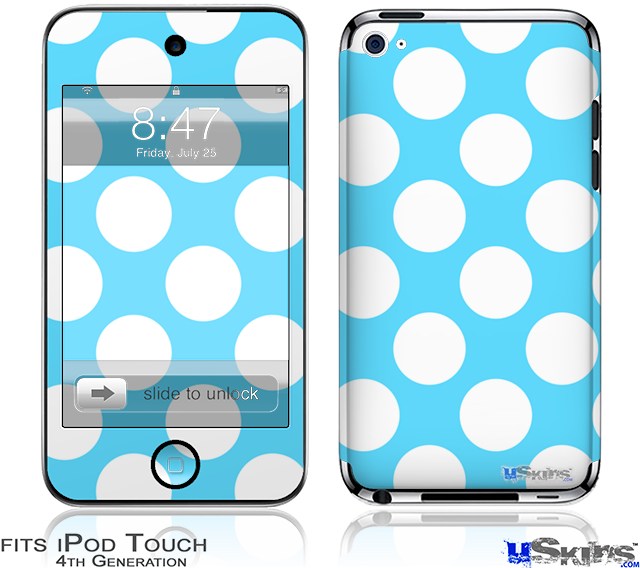 iPod Touch 4G Decal Style Vinyl Skin - Kearas Polka Dots White And Blue