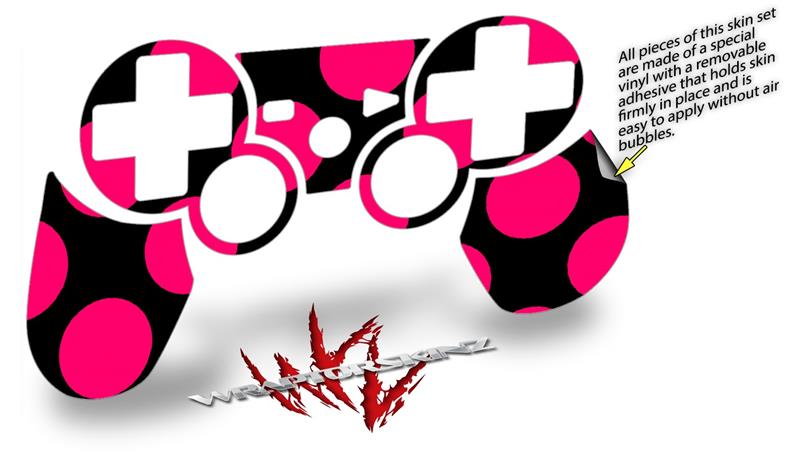 Sony PS3 Controller Decal Style Skin - Kearas Polka Dots Pink On Black (CONTROLLER NOT INCLUDED)