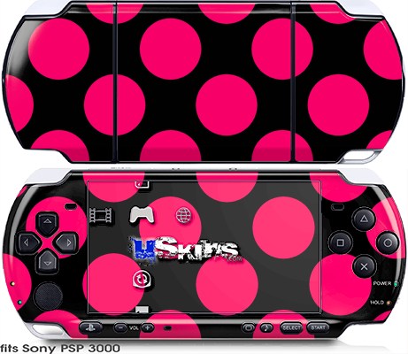 Sony PSP 3000 Skin - Kearas Polka Dots Pink On Black