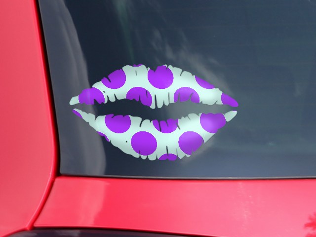 Lips Decal 9x5.5 Kearas Polka Dots Purple And Blue