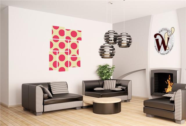 Kearas Polka Dots Pink On Cream - 7 Piece Fabric Peel and Stick Wall Skin Art (50x38 inches)