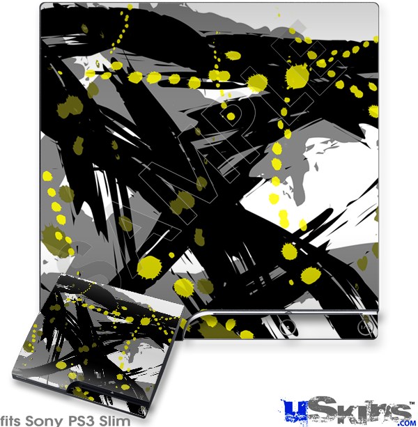 Decal Skin compatible with Sony PS3 Slim Abstract 02 Yellow