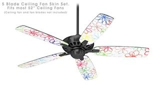 Kearas Flowers on White - Ceiling Fan Skin Kit fits most 52 inch fans (FAN and BLADES SOLD SEPARATELY)