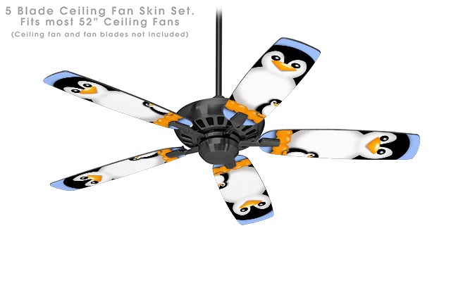 Penguins on Blue - Ceiling Fan Skin Kit fits most 52 inch fans (FAN and BLADES SOLD SEPARATELY)