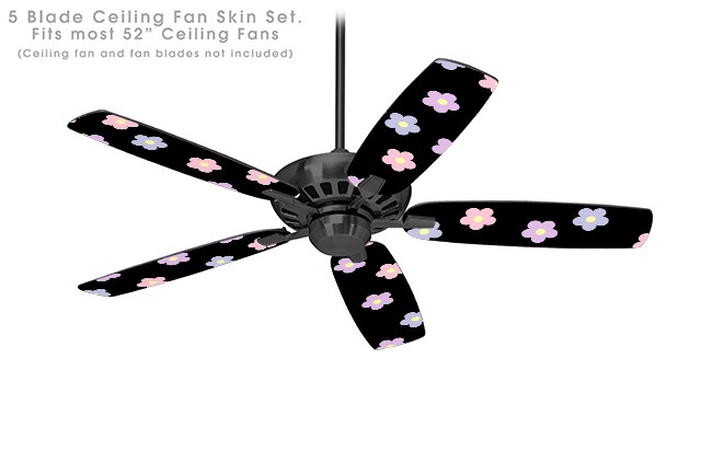 Pastel Flowers on Black - Ceiling Fan Skin Kit fits most 52 inch fans (FAN and BLADES SOLD SEPARATELY)