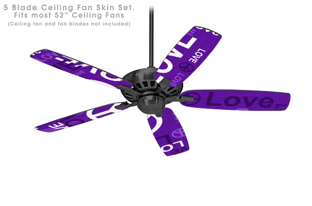 Love and Peace Purple - Ceiling Fan Skin Kit fits most 52 inch fans (FAN and BLADES SOLD SEPARATELY)
