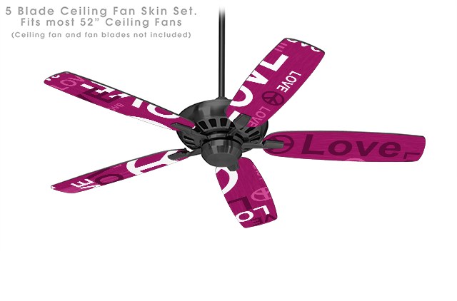 Love and Peace Hot Pink - Ceiling Fan Skin Kit fits most 52 inch fans (FAN and BLADES SOLD SEPARATELY)