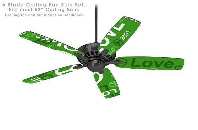 Love and Peace Green - Ceiling Fan Skin Kit fits most 52 inch fans (FAN and BLADES SOLD SEPARATELY)