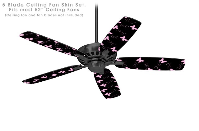 Pastel Butterflies Pink on Black - Ceiling Fan Skin Kit fits most 52 inch fans (FAN and BLADES SOLD SEPARATELY)