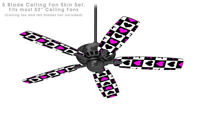 Hearts And Stars Pink - Ceiling Fan Skin Kit fits most 52 inch fans (FAN and BLADES SOLD SEPARATELY)